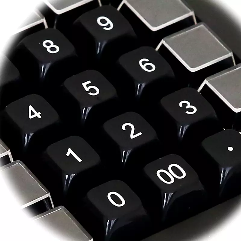 The numeric keycaps adopt a dual color injection molding process, with prominent numbers that never fade.